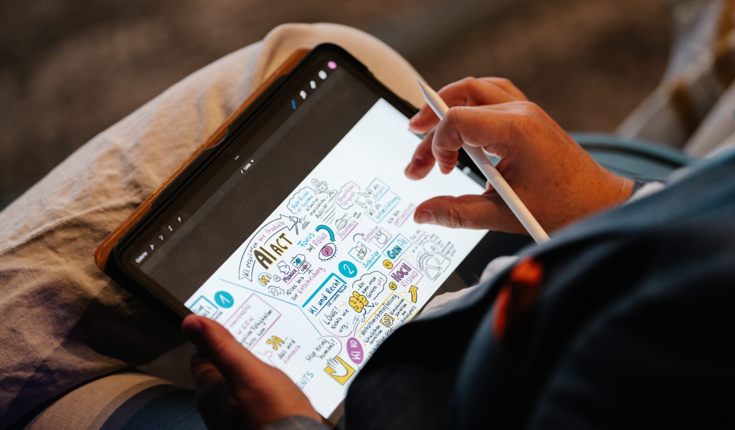 Wenn ich zu Ihnen ins Unternehmen oder in die Organisation komme und Sie mit dem Stift live begleite, werden Inhalte und Prozesse nicht nur klarer, sondern sie bleiben auch nachhaltiger in den Köpfen Ihrer Mitarbeiter:innen und Teilnehmenden an Workshops und Veranstaltungen haften.